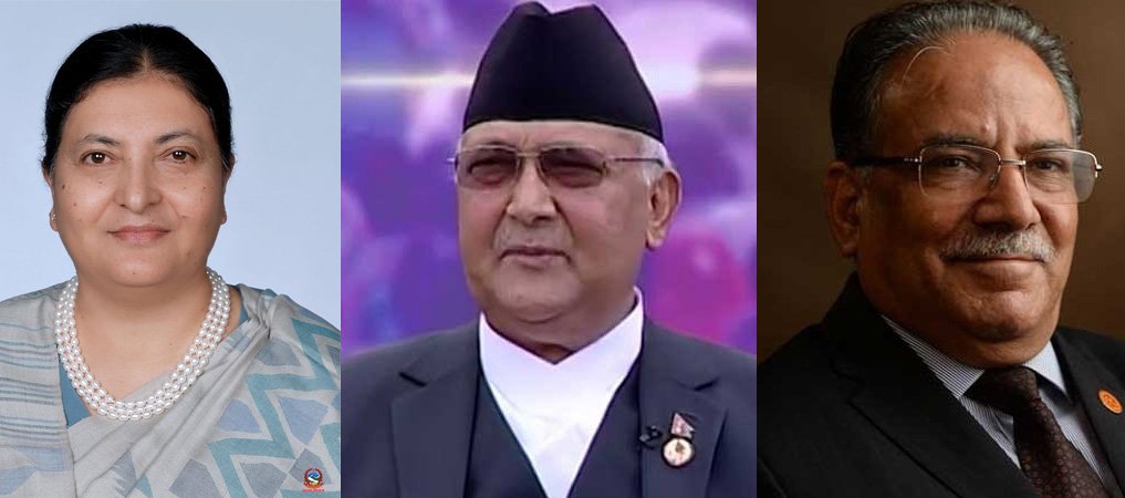 काठमाडौं, मंसिर १८ गते । राष्ट्रपति विद्यादेवी भण्डारीसँग नेपाल कम्युनिष्ट पार्टी ९नेकपा० का अध्यक्षद्वय केपी शर्मा ओली तथा पुष्पकमल दाहाल प्रचण्डले आज छुट्टाछुट्टै भेटघाट गर्नुभएको छ । राष्ट्रपति निवास शीतल निवासमा भएको भेटलाई नियमित भेट भनिएको छ ।