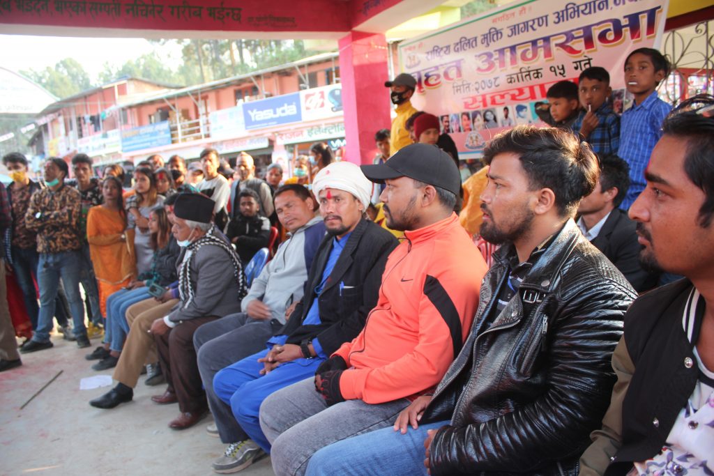 कार्यक्रममा यस अभियानका मध्य नेपालका संयोजक केशब नेपाली, सल्यान जिल्लाका दलित नेता,अगुवाहरु जनक बि.क , क्षेत्र बहादुर बि.क, घनश्याम बि.क, प्रेम नारायण बि.क, लाल बहादुर बि.क, टिकाराम बि.क, जात व्यवस्था उन्मुलन मोर्चा नेपालका सचिव महाबिर विश्वकर्मा, दलित नेता तथा अधिकारकर्मी भिम परियार, खड्ग बहादुर बि.क , दलित अधिकारकर्मी छबि परियार, रमेश बि.क लगायतका दलित अगुवाहरुको मन्तव्य राखेका थिए ।कार्यक्रममा सल्यानमा जन्मिएर नेपालको पौरानिक खष भाषालाई राष्ट्रिय तथा अन्तराष्ट्रिय क्षेत्रमा चर्चाको शिखरमा पुर्याउने खष भाषा संरक्षक तथा हँस्य कालाकार कुल बहादुर वली, कलाकार रमेश क्षितिज बराईली लगायतले आफ्नो प्रस्तुति राखेका थिए ।