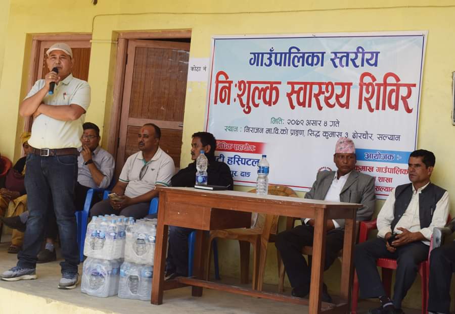 जिल्ला समन्वय समितिका प्रमुख बेलाराम रावलको प्रमुख आथित्यमा भएको स्वास्थ्य सिबिर कार्यक्रममा बोल्दै गाउपालिकाका अध्यक्ष भरत गिरीले आफुले सबै भन्दा पहिला आम नागरिकको स्वास्थ्य लाई प्राथाकिता दिएको बताए ।
