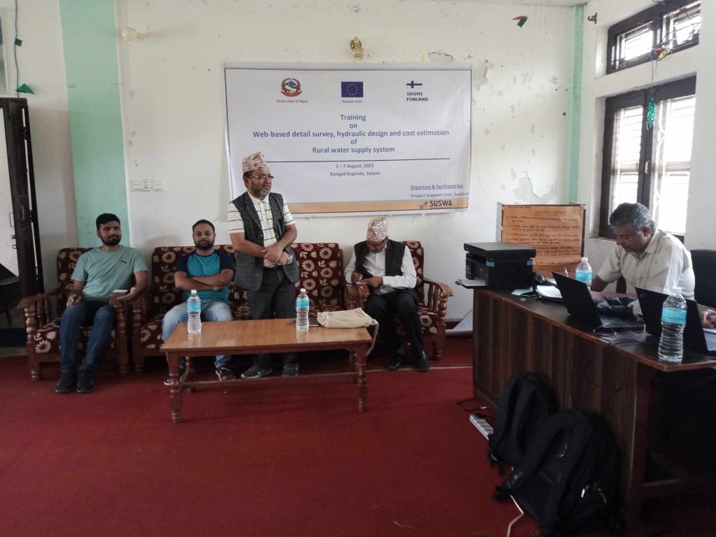 सवैका लागि दिगो खानेपानी, सरसफाई तथा स्वच्छता आयोजना (सुस्वा) अन्तर्गत प्राविधिक जनशक्ति (प्राविधिक क्षेत्रका कर्मचारीहरु) कालागि सातदिने तालिम बनगाड कुपिण्डे नगरपालिकामा मंगलबारदेखि शुरु भएको छ । तालिममा डोल्पा, हुम्ला र सल्यान गरी तीन जिल्लाका छ वटा पालिकामा कार्यरत इन्जिनियर, सव इन्जिनियर र सुस्वा परियोजनाका प्राविधिक सहजकर्ताहरुको सहभागिता रहेको छ । परियोजना सञ्चालन भएका पालिकाहरु सल्यानका क्रमशः सिद्ध कुमाख, छत्रेश्वरी गाउँपालिका र बनगाड कुपिण्डे नगरपालिका तथा डोल्पाको त्रिपुरा सुन्दरी र हुम्लाको नाम्खा तथा खार्पुनाथ गाउँपालिकाबाट तालिममा सहभागिता रहेको छ । तीन जिल्लाबाट १८ जनाको सहभागिता रहेको तालिम साउन १६ गतेदेखि २२ गते सम्म चल्ने छ । प्रभावकारी सिकाईको लागि र आगामी दिनमा आउन सक्ने समस्याहरु सजिलै हल गर्नका लागि प्रयोगात्मक अभ्यास पनि गरिने भएको छ । नयाँ प्रविधिको माध्यमबाट ‘खानेपानी आयोजना सर्भे, डिजाईन र स्टिमेट गर्ने तरिकाहरु बारे तालिम दिईने जानकारी प्राविधिक विशेषज्ञ नारायण सिंह खवासले दिनुभएको छ ।